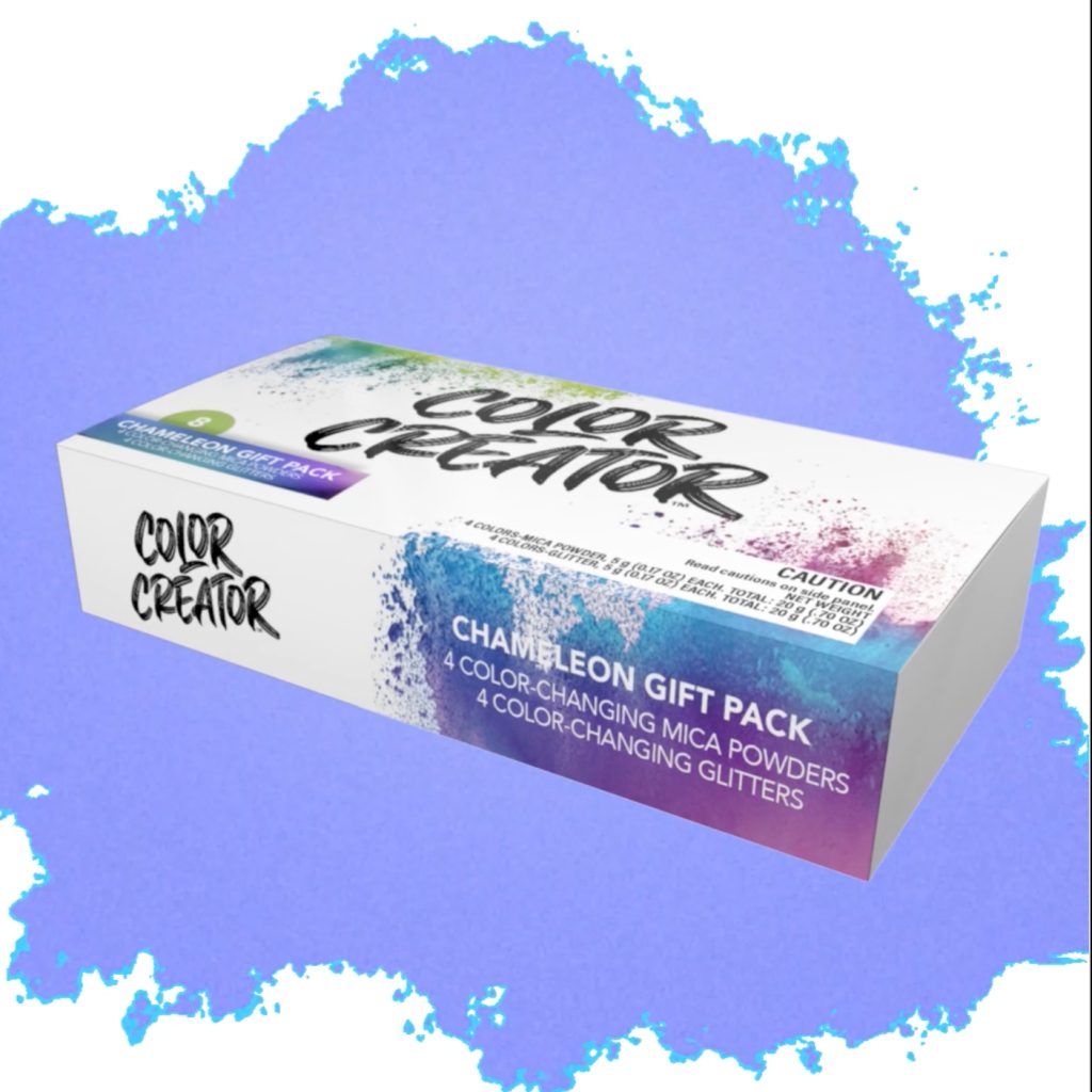 Animation highlighting a new kit of color-changing and glitter powders and how they can enhance creative projects with rich colors and a shimmering finish.